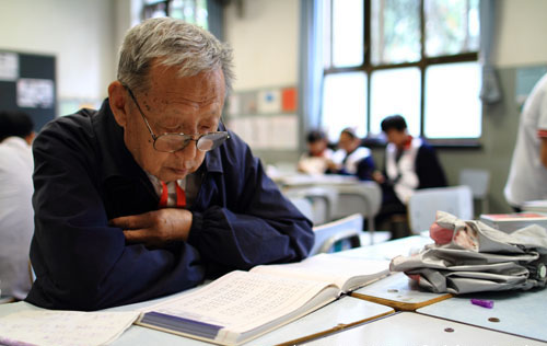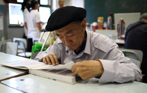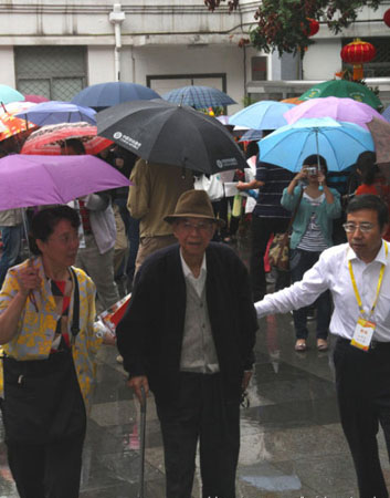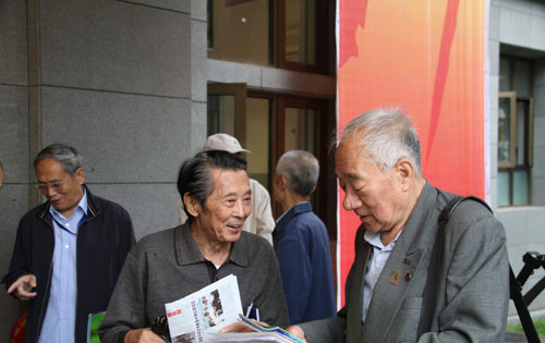 三、四十年代的校友們已經白發(fā)蒼蒼,看到他們微駝著背,腳步都有些顛簸了,他們相擁著,緊緊地彼此握手,眼睛里淚光閃動,也許他們已經十幾年,甚至是幾十年沒有見面了,曾幾何時,他們也是匯文中學英姿颯爽的青少年!