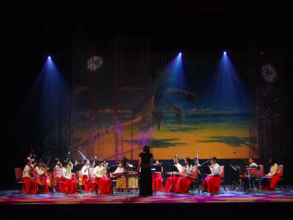 臺(tái)中雙十的管弦樂隊(duì)技藝精湛,曾在維也納金色大廳里,用音樂感染了全世界的音樂愛好者。今晚他們?cè)谶@里,又為觀眾獻(xiàn)上一場(chǎng)精彩的演出。樂隊(duì)指揮林文也先生是這支樂隊(duì)的靈魂,他在臺(tái)上風(fēng)度翩翩,在他優(yōu)雅的指揮下,樂器也有了生命,并發(fā)出一個(gè)個(gè)優(yōu)美的音符,組成一支支有生命的樂章!短一ǘ伞份p快優(yōu)美的旋律里,觀眾感覺自己仿佛置身于那美麗渡口,感受那無邊盎然的春意,興之所至,林先生還轉(zhuǎn)過身來,讓臺(tái)下觀眾用陣陣歡快的掌聲為這美妙樂聲增添無邊的氣氛,臺(tái)上臺(tái)下,其樂融融。而《威風(fēng)凜凜》的演奏,舒緩的樂聲帶給人的則是威嚴(yán)、力量,兩個(gè)節(jié)目,兩種風(fēng)格,讓觀眾充分領(lǐng)略了管弦音樂的魅力。